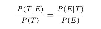 Somehow dividing both sides by P(T) means Bayes’ theorem “implies that data E confirms H if P(E|T) > P(E).” This is algebraically equivalent to the definition for the word “confirms” above, except he drops the “if and only if.”