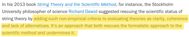 These physics defenders have lined up against critics who say certain non-empirical theories are nonsense. The defenders claim 1) that these theories are not all of physics, 2) not a lot of physics, and 3) even if they were, it’s fine because the theories might be true.