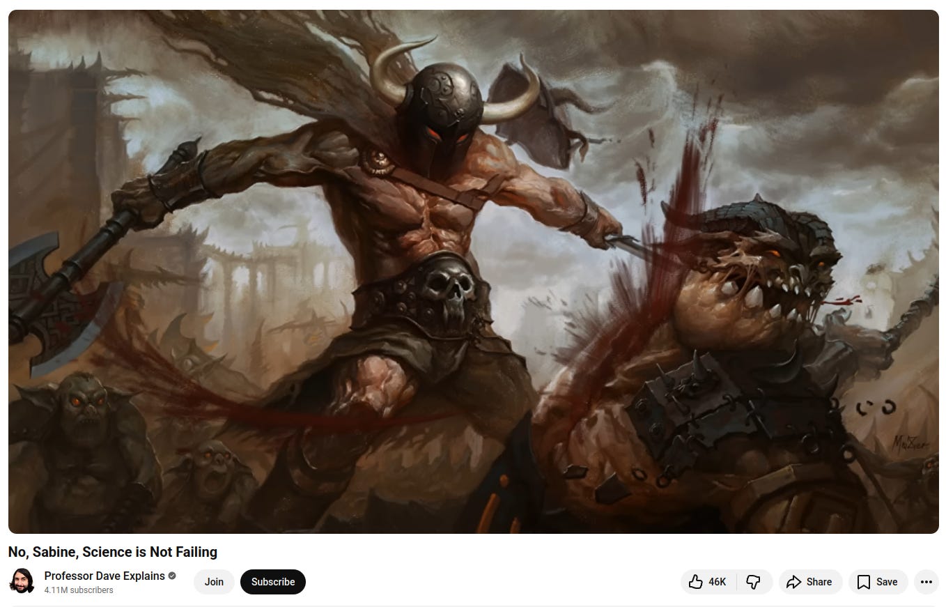 Despite this obvious danger to the scientific bedrock, empiricism gets lost in squabbles over rhetoric: should Physics World have said “cult” or “cult-like?” Should they have put “obedient idiots” in quotes?1 On YouTube, Professor Dave, a science communicator with 4 million followers, escalated the fight well beyond his “poisoning society” line to the idea that we need “warriors for science” in his critique of Sabine Hossenfelder’s frequent use of “science is broken” and “I don’t trust scientists.”